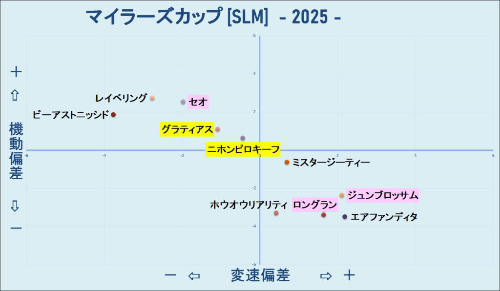 ・縦軸が【機動偏差】 ・横軸が【変速偏差】