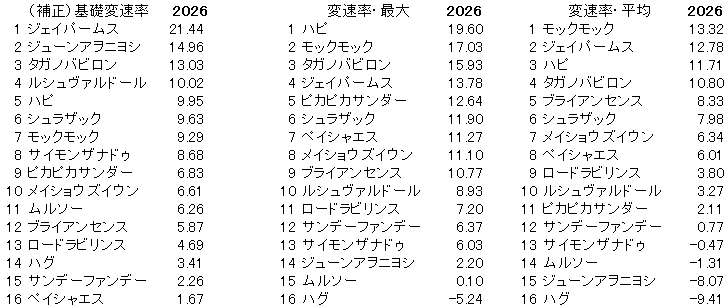 変速率・近走平均